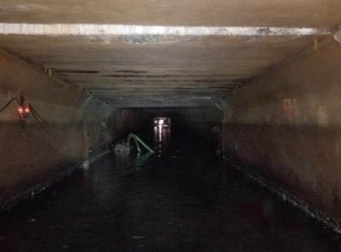 The 10ft x 5ft box culvert measured approximately 1700 meters long, or 5600 feet, and were 3-8ft below grade on average. The infiltration had been happening for some time, having an average of 1 – 1 1/2ft of silt that settled on the culvert floor. The culvert access points comprised of manholes that were located every 300 feet. The culverts had to be dammed off to minimize standing water, and the silt removed prior to injections.