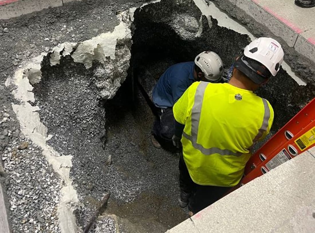 The process required full personal protective equipment (PPE) due to the handling of chemical materials and involved detailed safety meetings, drilling, installation, and clean-up phases. The project was completed over a span of three days, with the polyurethane quickly solidifying to minimize downtime and allowing the construction team to proceed with the excavation ahead of schedule.