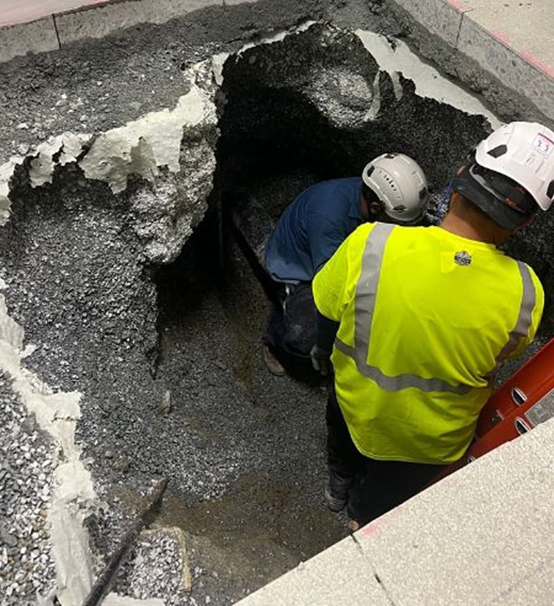 The stabilization was successful, preventing any disturbances to the chiller pad or adjacent structures, and facilitated the efficient and safe installation of the CIPP liner. This project demonstrates the effective use of advanced geotechnical polyurethane in providing critical support for complex excavation tasks, ensuring structural safety and showcasing innovative solutions in construction practices.