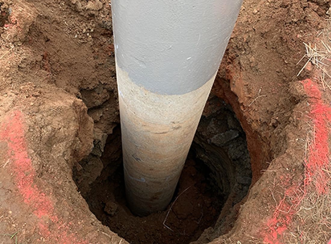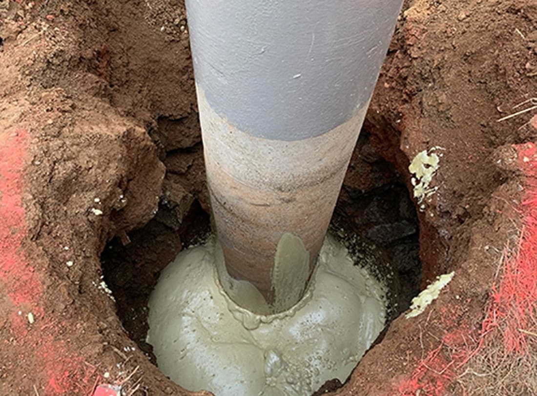 Setting and Stabilizing 75′ lighting poles for a little league baseball park using Strata-Fill 24-018 polyurethane.