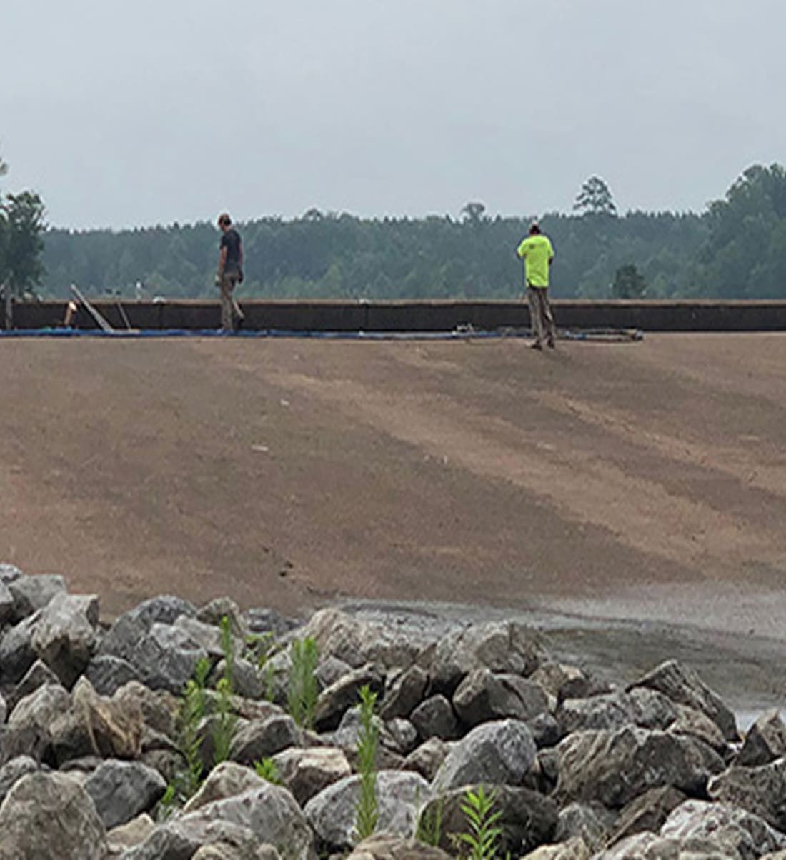 Spillway rehabilitation stabilizing soil subsidence and erosion caused by water seepage through the dam in Neshoba County, MS